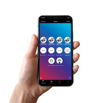 Para permitir a los usuarios finales activar escenarios de iluminación, pero impidiéndoles modificar los ajustes, la solución incluye el ITERRA PRESS inalámbrico multifunción de Schréder. Este sirve como control remoto todo en uno que da acceso a las funciones de control esenciales de la aplicación móvil Schréder ITERRA. Como la parte trasera del dispositivo es magnética, ofrece una gran flexibilidad para la instalación, con un cambio de ubicación sencillo en cualquier momento.