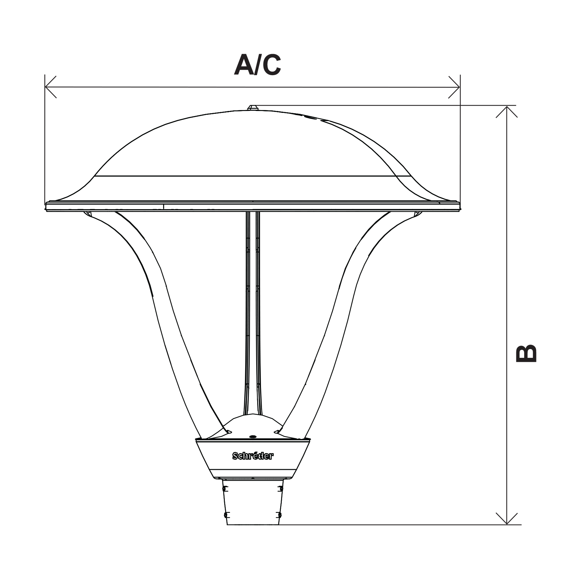 La luminaria ISLA LED dispone de un montaje deslizante sobre una espiga de Ø60 o Ø76 mm.