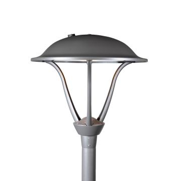 Esta luminaria equipada con LED, instalada sobre una columna cónica cilíndrica es un ejemplo de ligereza y elegancia.