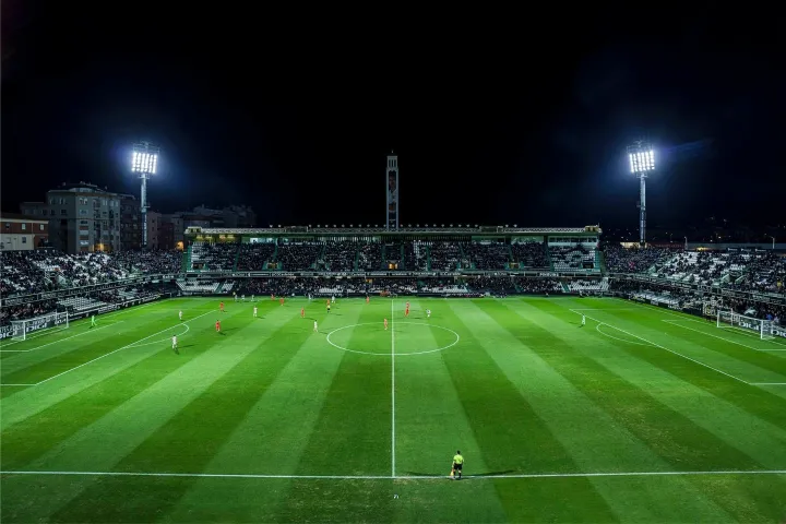 En el estadio, OMNIBLAST proporciona los 1.500 lux necesarios con una uniformidad global de más del 75%. Gracias a la luz brillante y sin deslumbramientos garantiza un gran confort visual, y los jugadores y los aficionados tienen una visión clara del campo y pueden mantener la vista en el balón en todo momento.