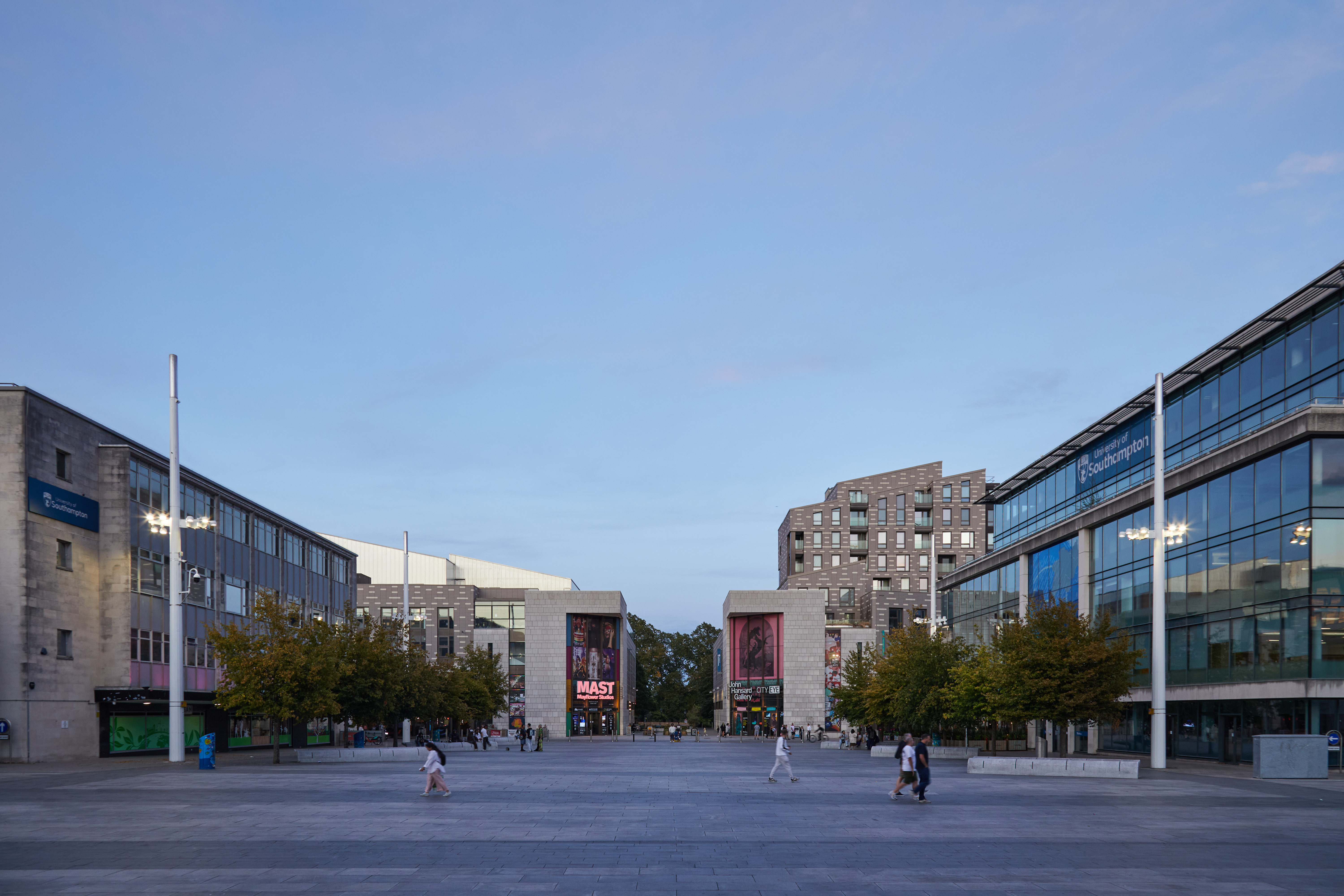 Guildhall Square, en el corazón del barrio cultural de Southampton, es un animado espacio público en el que se celebran eventos, exposiciones y actuaciones. Se trata de un lugar clave para que se reúna no solo la comunidad de la Universidad de Southampton, sino también los visitantes. Remodelada originalmente en 2010 con un alumbrado, pavimento y mobiliario urbano modernos, la plaza es un destino popular para asistir a conciertos y espectáculos.